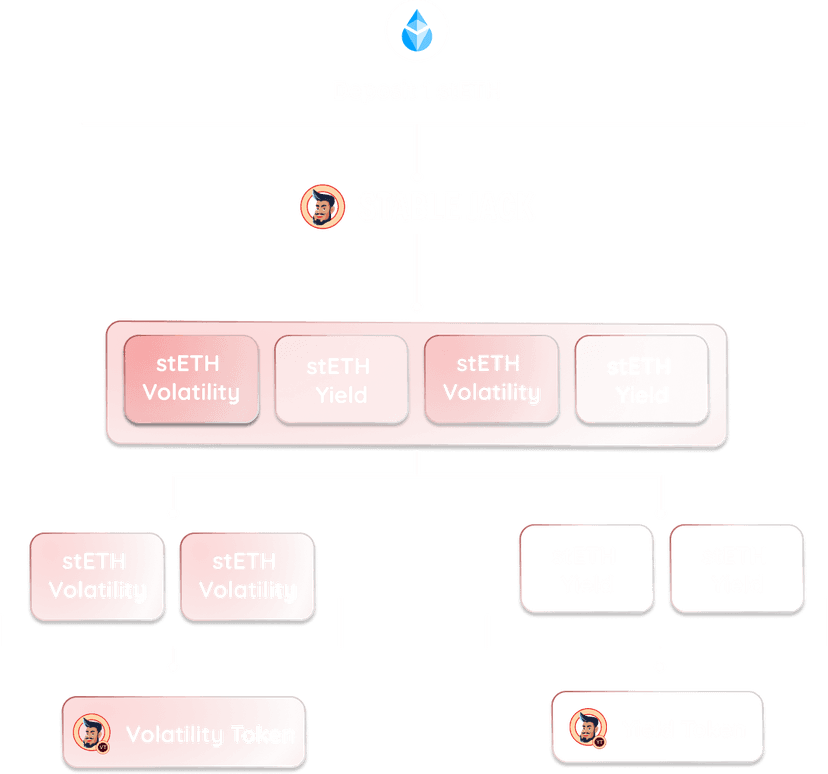 Stable Jack strips the yield and volatility of the collateral asset into two products: